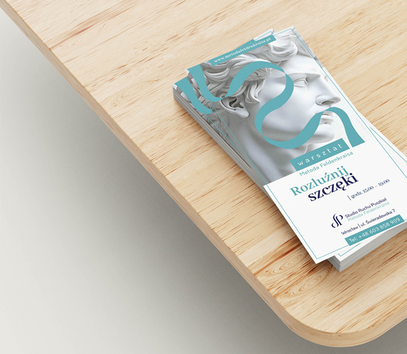 Materiały firmowe i wizualne budują zaufanie i podkreślają wysoką jakość metody. Co ważne – branding nie tylko prezentuje studio, ale też edukuje: dzięki niemu coraz więcej osób dowiaduje się, czym właściwie jest metoda Feldenkraisa i jakie może dawać korzyści.